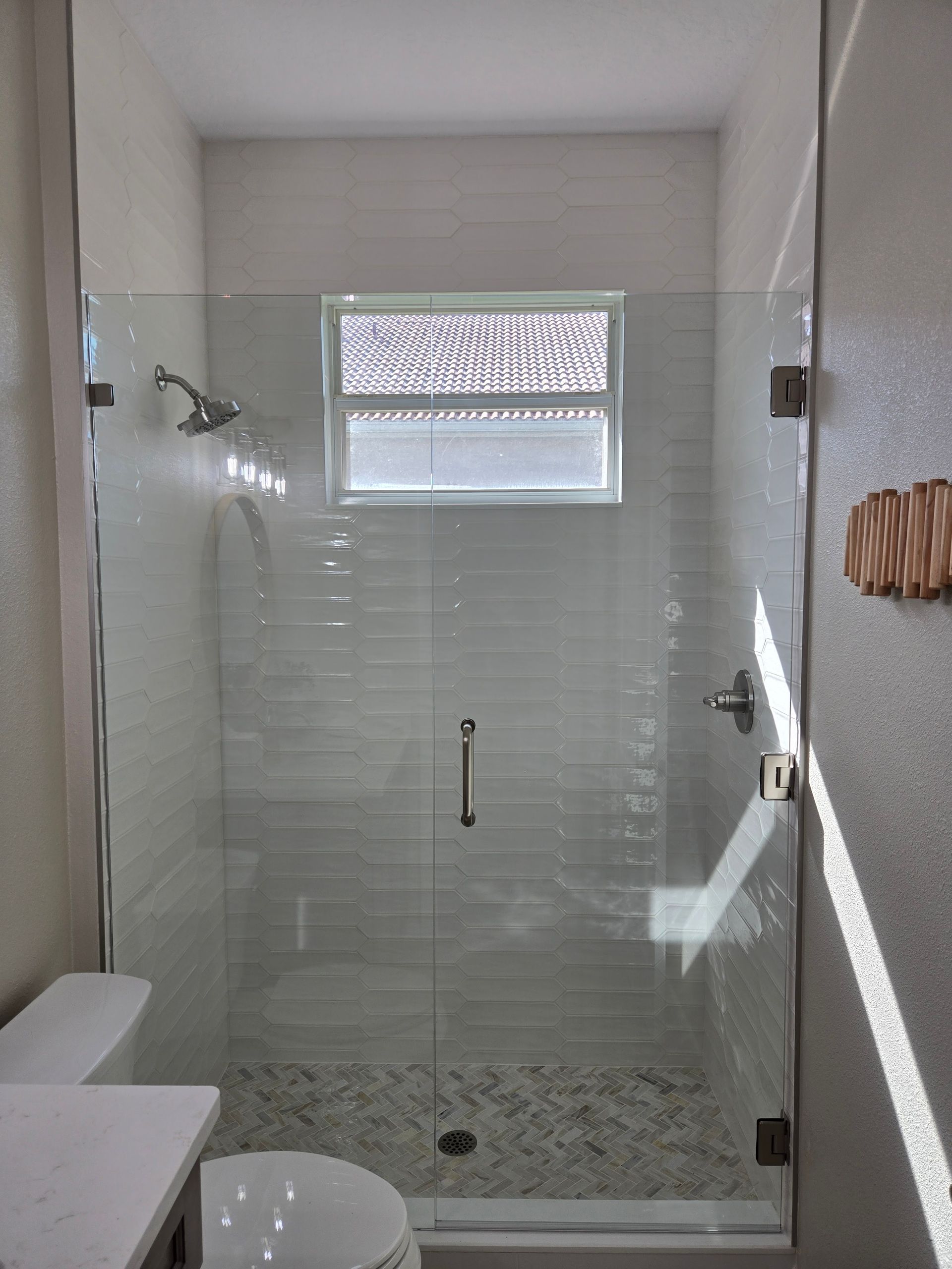 Our frameless shower doors are the perfect addition to any bathroom. They provide a sleek and modern look that will elevate the overall design of your space. We offer a variety of glass types and hardware finishes to choose from, so you can customize your shower door to match your personal style and improve the value of your home. We will work with you every step of the way to ensure that your new shower door fits perfectly and exceeds your expectations.